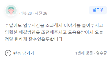 급하고 초조한 마음에 방문했는데 명쾌한 답변 들어서 좋았습니다.
