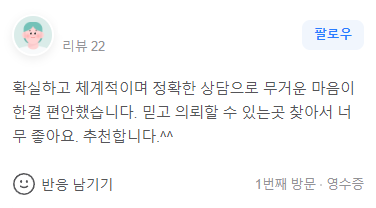 상담하고 좀 안정이 된 것 같습니다.