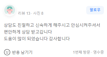 안심시켜 주셔서 편안하게 상담받고 갑니다.