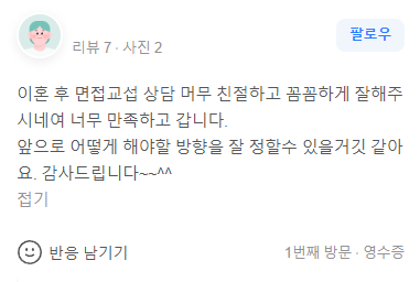 이혼 후 면접교섭 상담 친절하고 꼼꼼하게 해주시네요.
