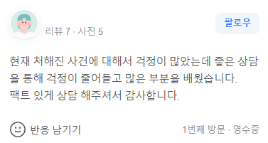 현재 사건에 대해서 걱정이 많았는데 좋은 상담...