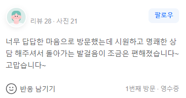 시원하고 명쾌한 상담 해주셔서 조금은 편해졌습니다~
