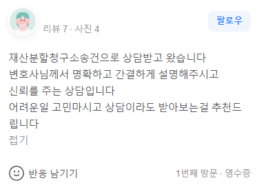 재산분할청구소송건... 신뢰를 주는 상담 받고 왔습니다.