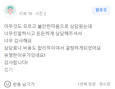 사무실 내부도 차분해서 상담 시 집중하기에도 좋았습니다.