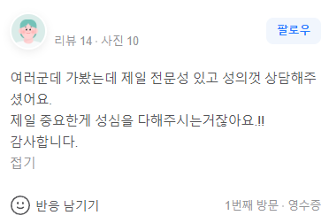 여러군데 가봤는데 제일 성의껏 상담해 주셨어요.