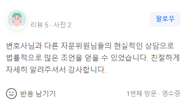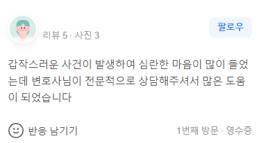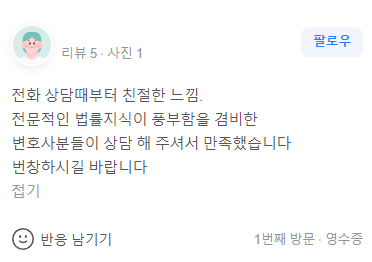 전화 상담부터 친절한 느낌..변호사분들이 상담해 주셔서 만족합니다.